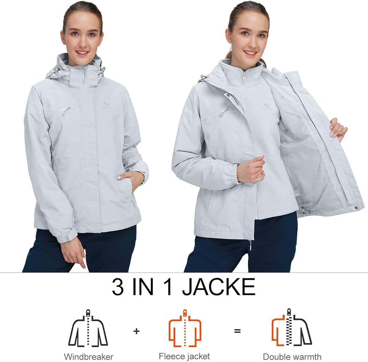 MULTIFUNCTIONAL 3 IN 1 SKI JACKETS: Two-piece set jacket, each piece can be worn separately. Equipped with a full waterproof exterior shell and a premium warm insulated fleece inner. The jacket is waterproof, breathable, and seam-sealed to provide maximum comfiness without impeding your movement.